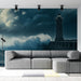 Fener ve Okyanus Manzaralı Fotoğraf Duvar Kağıdı | Güçlü dalgalarla yüzleşen bir fener manzarası