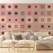 Bu geometrik duvar kağıdı, pastel tonlarda kare desenleri içerir, iç mekanınıza retro ve sıcak bir atmosfer kazandırmak için mükemmeldir. Yumuşak renkler ve tekrarlayan şekiller, herhangi bir alana sanatsal ve modern bir dokunuş getirir.
