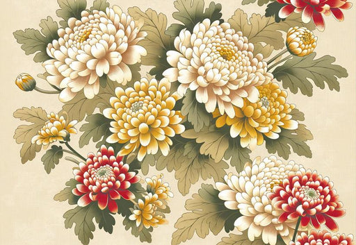 Tüm ayrıntıları görüntüleJapon Çiçeği Duvar Kağıdı | Vintage Kiku Stil Çiçekler