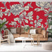 Fototapet shabby chic | Parlak kırmızı zemin üzerinde beyaz çiçekler