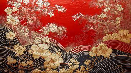 Art'loloİç mekanınıza Japon sanatının zarafetini getirin kırmızı ve altın Japon çiçek desenli duvar kağıdı ile. Canlı kırmızı arka plan üzerinde altın deta...