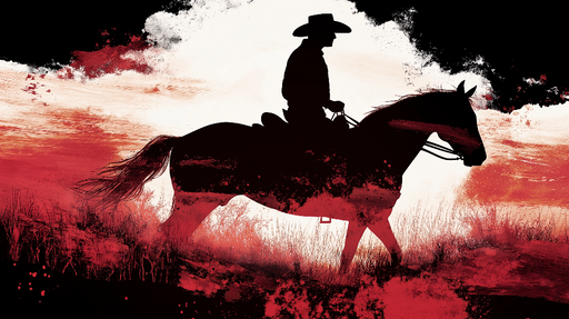 WonderMuralBu etkileyici Fotoğraf Duvar Kağıdı, cesur bir renk oyunu olan kırmızı ve siyah tonlarını birleştirerek, bir atlı binici siluetini vurgular. Sanats...