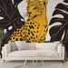 Bu muhteşem duvar resmi kağıdı, canlı kürkleri ile zenginleştirilmiş sarı ve siyah tonlarla birlikte, leopar içeren tropikal yapraklar arasında poz veriyor. İkonik hayvan ile bitkisel arka plan arasındaki kontrast, hem dinamik hem de sakin bir orman atmosferi yaratıyor.
