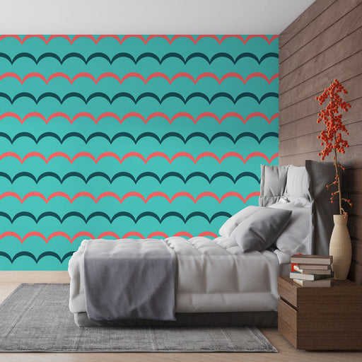 Studio SamaFotoğraf duvar kağıdı ölçeklerimiz, turkuaz ve mercan tonlarında dalgalı bir desen sunar, bu da herhangi bir odaya modern ve canlı bir dokunuş get...