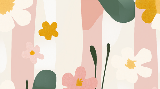 WonderMuralBu duvar resmi, pembe, sarı ve beyaz renklerde stilize edilmiş çiçeklerle birlikte zarif yeşil yapraklarla birlikte neşeli bir çiçek deseni sunmakt...