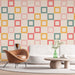 Renkli kareler içeren geometrik duvar resmimiz ile iç mekanınıza bir dokunuş retro tarzı ve sofistike bir hava katın. Bu büyüleyici tasarım, pembe, sarı ve yeşil tonlarıyla hafif bir arka plan üzerinde uyum sağlar ve oturma odanıza veya çalışma alanınıza canlı bir atmosfer getirmek için mükemmeldir.