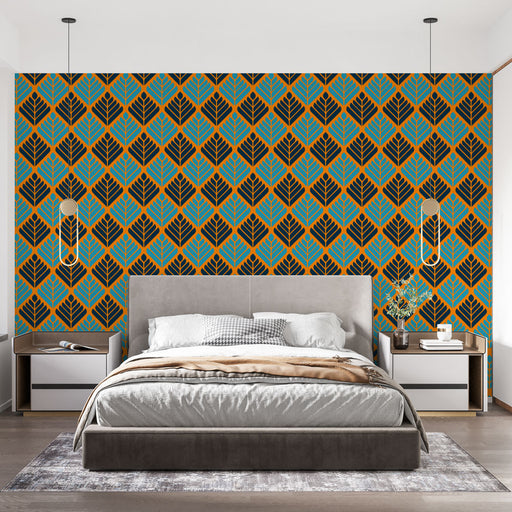Studio SamaBu geometrik duvar kağıdı, parlak turuncu bir arka plan üzerinde turkuaz yaprak desenleriyle zarif bir tasarıma sahiptir. Oturma odanıza veya yatak...