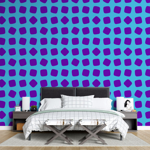 Studio SamaCanlı deseni olan duvar resimli kağıdımızla mekanınıza modern bir dokunuş ekleyin. Tasarım, parlak mavi bir arka plan üzerinde mor kare şekillerini...