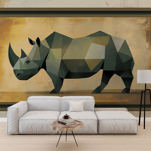 WonderMuralBu duvar resmi kağıdı, iç mekanınıza modern bir dokunuş getiren geometrik şekillerle stilize edilmiş muhteşem bir gergedan içeriyor. Yeşil, gri ve ...
