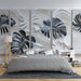 Fototapet taklit tablo | Dalgalı zemin üzerinde modern siyah beyaz yapraklar
