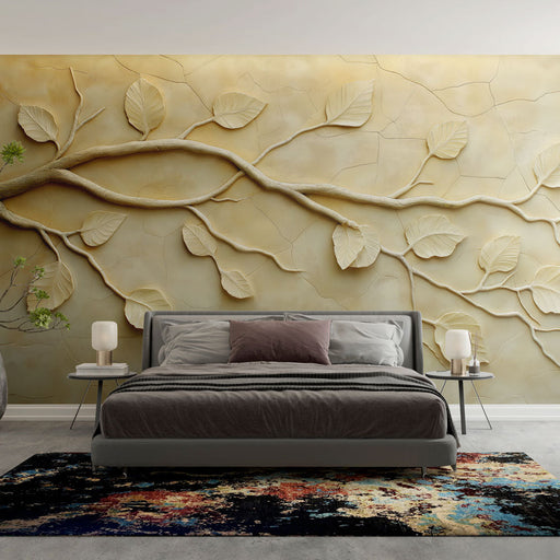 WonderMuralBu duvar resmi kağıdı, hafif dokulu bej arka plan üzerinde uzanan yükseltilmiş dalların zengin bir desenini içerir. Dikkatlice şekillendirilmiş zar...