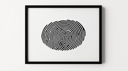 WonderMuralBu duvar resmi, beyaz bir arka plan üzerine siyah çizgilerle çizilmiş stilize bir parmak izi deseni içerir, çarpıcı ve çağdaş bir görsel etki yarat...