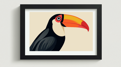 WonderMuralBu duvar resmi kağıdı, parlak kırmızı ve sarı tonlarda beğeni çeken bir tukanın stilize bir resmini içeriyor. Nötr arka plan, desenin canlı renkler...