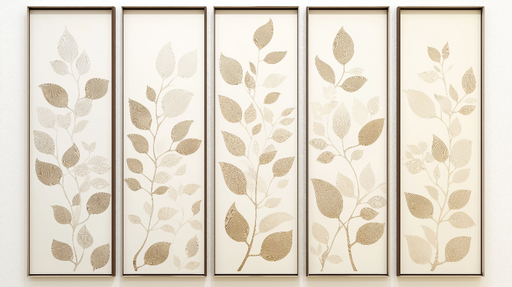 WonderMuralBu duvar resmi, zarif bir desende stilize yaprakların narin altın tonlarında oluşturduğu dinamik ve huzur verici bir görsel etkiye sahiptir. İnce ç...