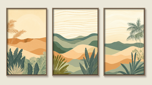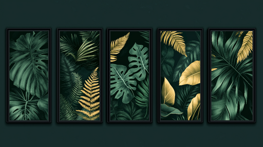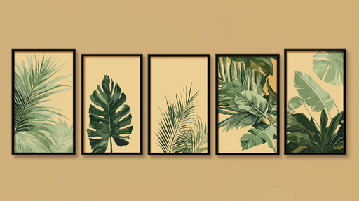 WonderMuralBu duvar resmi, minimalist çerçevelerde sanatsal bir şekilde düzenlenmiş bir dizi palmiye yaprağı içeriyor ve iç mekanınıza doğal bir zarafet dokun...