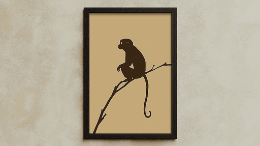 WonderMuralBu duvar resmi, yumuşak bej arka plan üzerine kahverengi tonlarda çizilmiş bir dalda oturan bir maymunun stilize siluetini içeriyor. Minimalist tas...