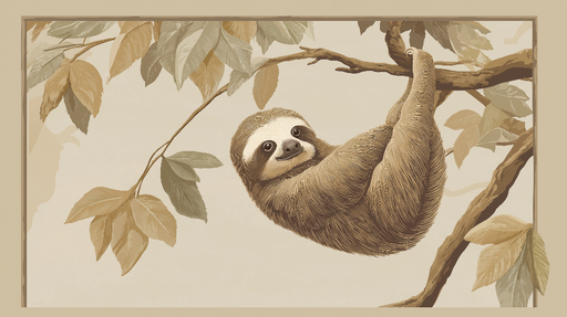 WonderMuralBu duvar resmi kağıdı, yumuşak tonlarda narin yapraklarla çevrili bir dalda asılı duran bir tembel hayvanın etkileyici desenini içermektedir. İllüs...