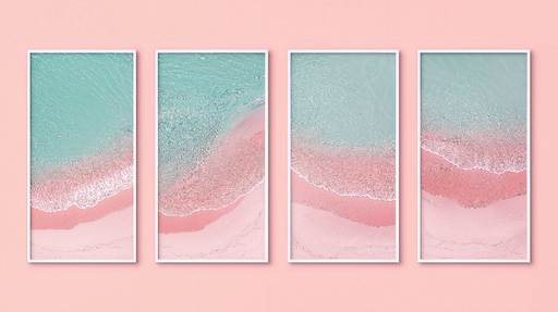 WonderMuralBu duvar resmi, sakin manzaraları çağrıştırarak sakin bir denizi ve turkuaz yansımaları ve pembe kum plajlarını tasvir eden dört panel ile etkiler....