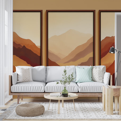 WonderMuralBu duvar resmi kağıdı, bejden tuğla kırmızısına kadar değişen sıcak tonlardan oluşan muhteşem bir stilize dağ manzarasını çağrıştırıyor. Dağların d...