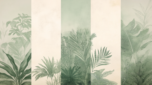 WonderMuralBu duvar resmi tropikal bir bahçeyi anımsatır, muhteşem yeşil yapraklar huzurlu bir arka plan üzerine dikkatlice yerleştirilmiştir. Gerçekçi detayl...