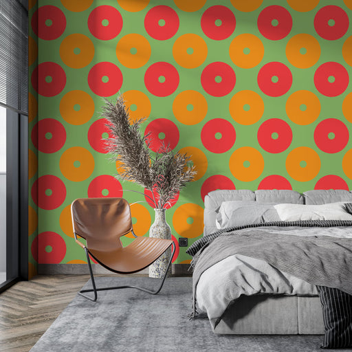Studio SamaÇok renkli daire desenleri olan retro duvar kağıdı ile iç mekanınıza bir dokunuşluk dinamizm ve nostalji ekleyin. Kırmızı, turuncu ve yeşilin parla...