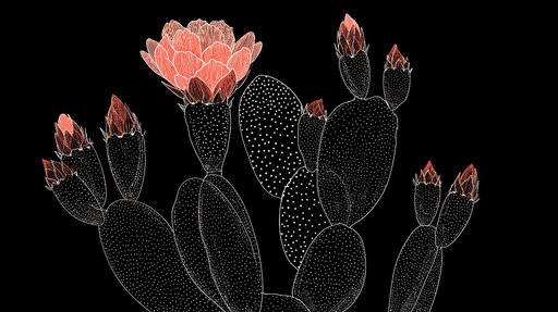WonderMuralBu duvar kağıdı güzel bir deseni ortaya çıkarır çizgiyle çizilmiş kaktüslerle, pembe tonlarda zarif çiçeklerle, cesur siyah bir arka plan üzerinde ...