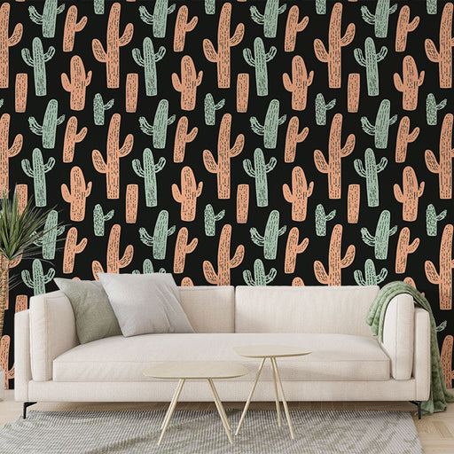 WonderMuralDuvar resmimiz, çarpıcı siyah bir arka plan üzerinde yumuşak yeşil ve şeftali tonlarında canlı bir kaktüs desenini içerir. Bu eğlenceli ve çağdaş ...