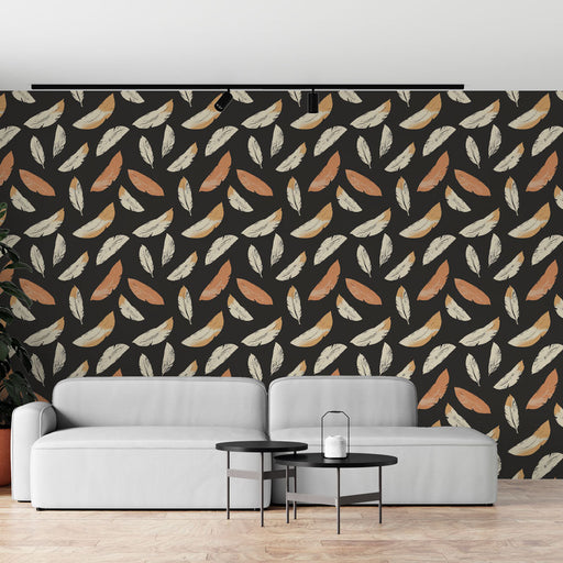 WonderMuralDuvar resmimiz sıcak kırmızı, altın ve turuncu tonlarda stilize tüylerin güzel bir desenini, zarif siyah bir arka plana karşı ortaya çıkarıyor. Re...