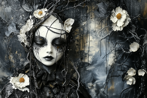 Tüm ayrıntıları görüntüleFototapet gizemli gotik | Siyah beyaz çiçekli maske
