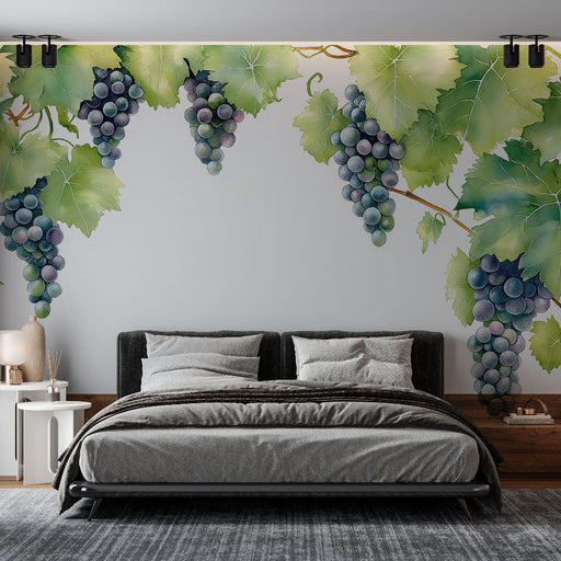 WonderMuralBu büyüleyici duvar resmi kaçışları ve üzümlerin güzel bir desenini içeriyor, sonbahar hasadının sıcaklığını çağrıştırıyor. Derin mor ile altın tur...