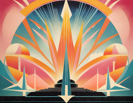 Art'loloSanat deko etkileri ve cesur geometrik şekillerle donatılmış fütüristik duvar kağıdımızı keşfedin. Pembe, turuncu ve mavinin canlı tonları, herhang...