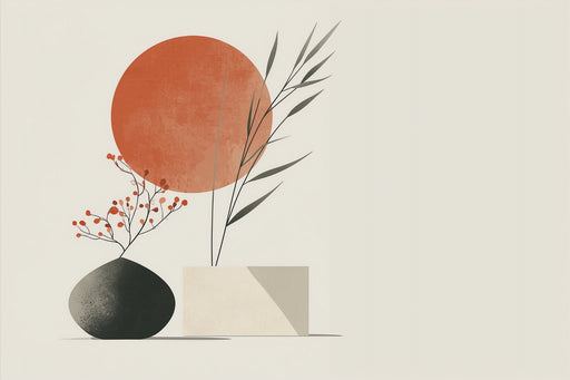 Art'loloBu Foto Duvar Kağıdı, modern ve huzur verici bir tasarım için botanik sanatı geometrik şekillerle zarif bir şekilde birleştirir. Arka planda koyu t...
