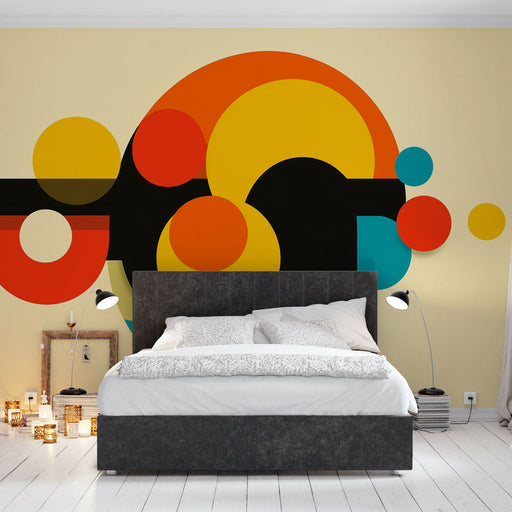 Art'loloİç mekanınıza çağdaş bir dokunuş ekleyin geometrik duvar kağıdı ile. Kırmızı, sarı, turkuaz ve siyah renklerdeki birbirine geçmiş dairelerden oluşa...