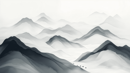 Art'loloBu duvar resmi dağları, yumuşak bir şekilde çizilmiş gri tonlarında dağ siluetleri ile huzurlu bir manzara sunar, sakin ve hayalperest bir ortam ya...