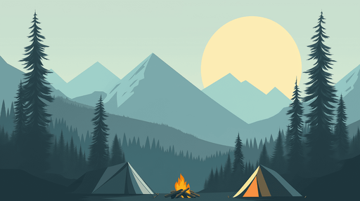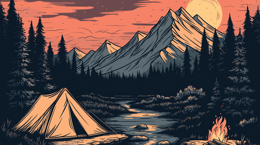 WonderMuralBu duvar resmi, arka planda muhteşem dağların bulunduğu bir kamp ateşi etrafındaki çadırları tasvir eden sakin bir kamp sahnesi çağrıştırıyor. Yeşi...