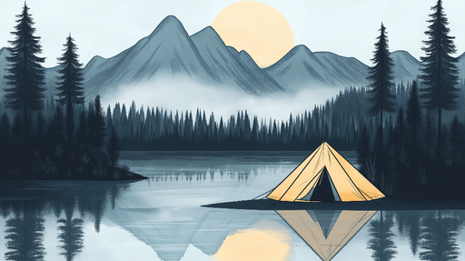 Tüm ayrıntıları görüntüleFototapet kamp | Suyun kenarında sakin bir kamp alanı manzarası