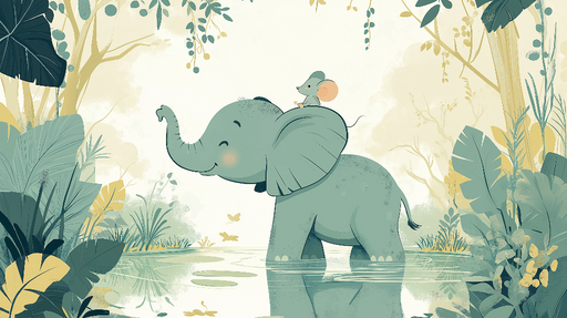 WonderMuralBu sevimli duvar resmi kağıdı, sırtında küçük bir fare taşıyan gülümseyen bir fili ve yoğun bitki örtüsüyle çevrili. Yeşil ve sarı tonların yumuşak...