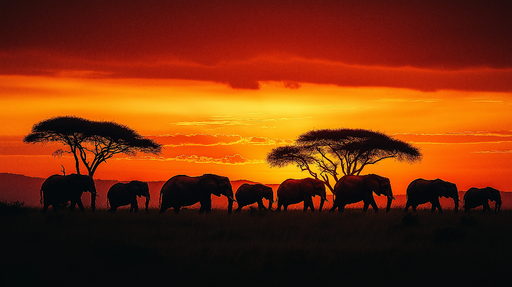 WonderMuralBu muhteşem tuval, sıcak renklerle dolu bir gökyüzü altında zarifçe hareket eden filin büyüklüğünü yakalar. Günbatımı manzarayı aydınlatır, sakin v...