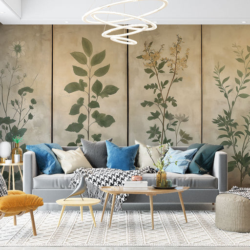 Fototapet narin yapraklar | Yumuşak ve doğal tonlarda stilize yapraklar