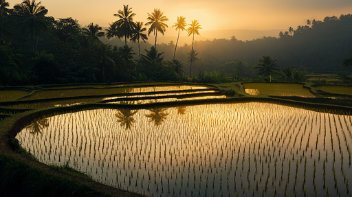 Tüm ayrıntıları görüntüleFototapet altın pirinç tarlaları | Gün batımında pirinç tarlalarının huzur veren manzarası