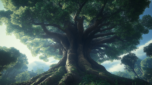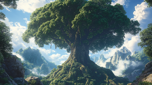 Tüm ayrıntıları görüntüleFototapet muhteşem-ağaç | Parlak bir gökyüzü altında dev bir ağaç