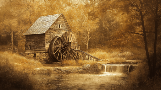 WonderMuralHarika bir manzara duvar kağıdımızı keşfedin, muhteşem bir sonbahar manzarasıyla çerçevelenen tahta su değirmeni. Altın tonları ve sıcak dokular hu...