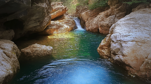 WonderMuralBu duvar resmi, serin turkuaz suların yatıştırıcı tonlarını ve görkemli kayaların dokusunu yakalayarak doğal bir vahaın huzurlu güzelliğini çağrışt...