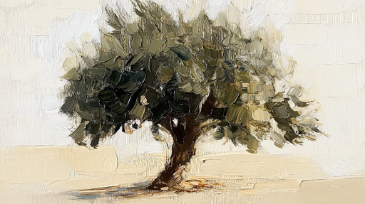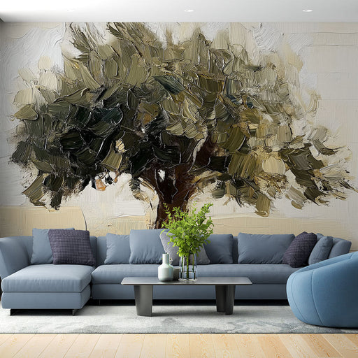 Tüm ayrıntıları görüntüleFototapet zeytin ağacı | Doğal renklere sahip stilize ağaç ve nötr arka plan