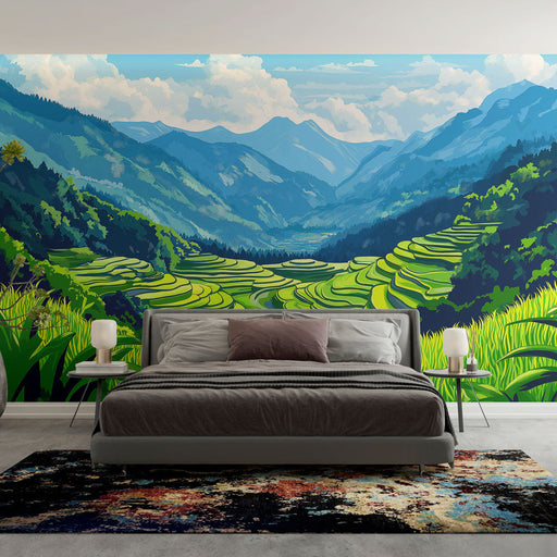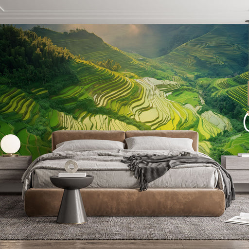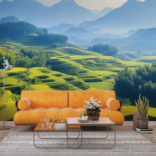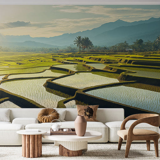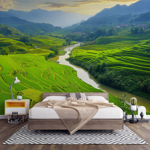 WonderMuralBu duvar resmi, yumuşak sabah ışığında yıkanmış muhteşem bir Asya pirinç tarlasını çağrıştırıyor. Uzak dağlar ve yemyeşil bitki örtüsü ile noktalan...