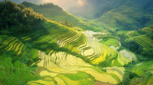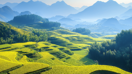 WonderMuralBu duvar resmi kağanın teraslı pirinç tarlalarının muhteşem bir manzarasını ortaya çıkarır, burada yeşil ve altın tonlar uyum içinde karışır. Tarl...