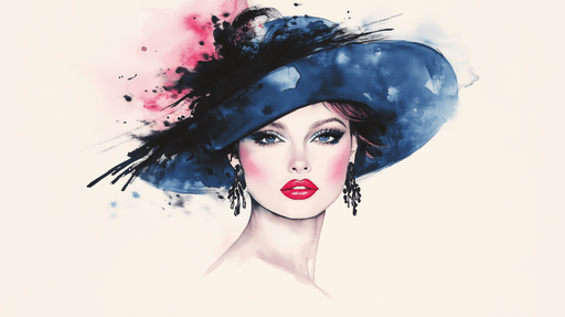 Art'loloAlanınızı, zarif bir su rengi mavi şapka ile süslenmiş bir kadını içeren sanatsal portre duvar kağıdı ile dönüştürün. Kırmızı ve siyahın sıçramalar...