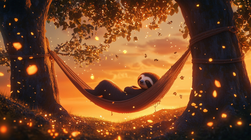 Art'loloBu tembel duvar kağıdı, akşam karanlığında hamakta dinlenen bir tembel hayvanı tasvir ederek huzur atmosferine dalmanızı sağlar. Parıldayan ışıklar...