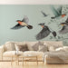 Harika duvar resmimiz, ince detaylarla ve canlı renklerle güzel bir şekilde resmedilmiş uçan kuşlar içermektedir. Pastel yeşil arka plan sakin bir atmosfer yaratırken, kuşların turuncu ve siyah dokunuşları bir dinamizm ve canlılık katmaktadır.