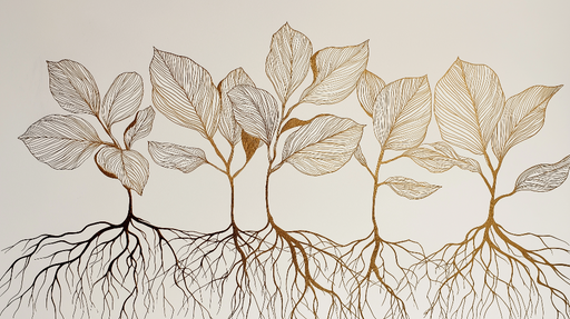 Tüm ayrıntıları görüntüleFototapet kökler ve altın yapraklar | Stilize desenlerle doğal zarafet